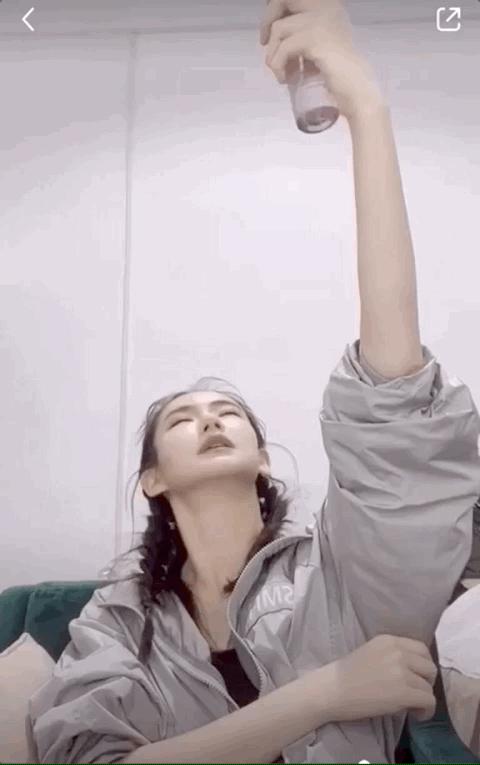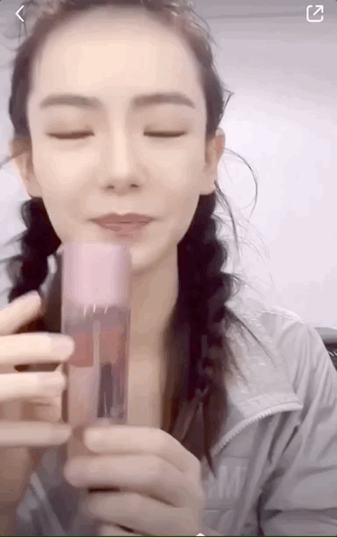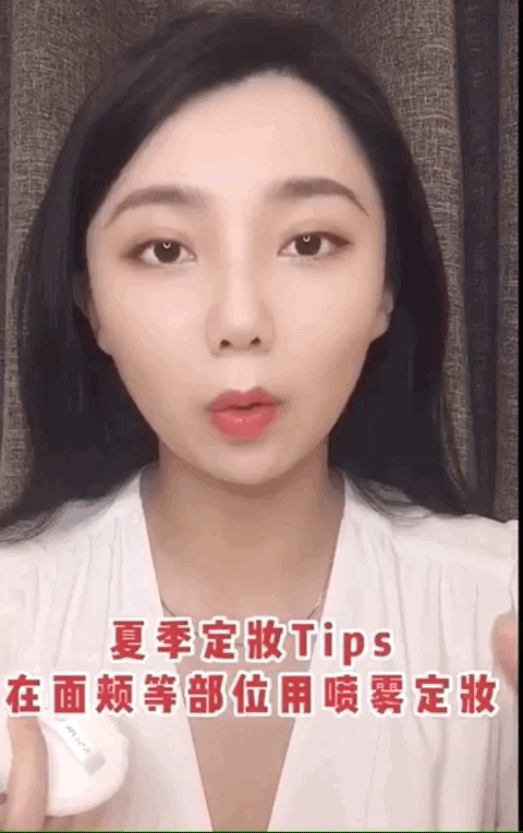 注意大家在喷定妆喷雾的时候不要离脸部太近,稍微远一点,像戚薇这样就是刚好的距离。
