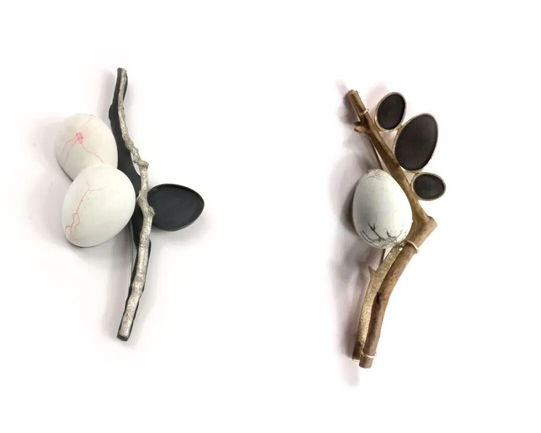 为了展现出自然的生命力,著名的当代首饰艺术家Anja Eicher用树枝和蛋壳制作首饰,给人一种“正在生长”的视觉,有趣更有意义。
