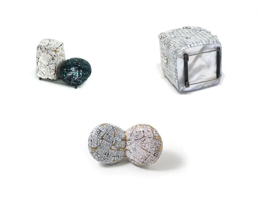 将蛋壳镶嵌和螺钿结合,Miki Asai 的作品捕捉出自然事物中抽象的颜色、质感变化,它的作品展现出了“并不完美的美”,具有很强的先锋精神。