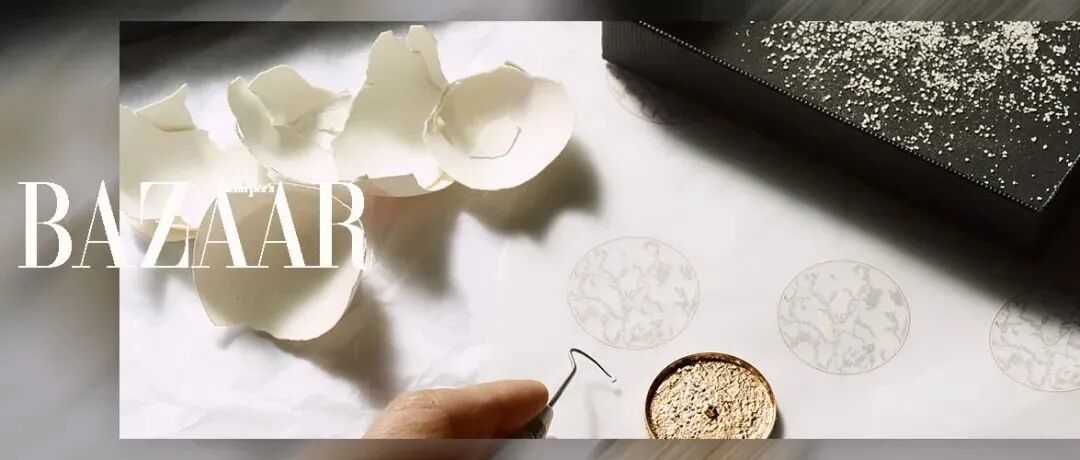 将蛋壳平整的压嵌到一起,再用色漆填缝。这就是各大珠宝品牌都在偷偷使用的——蛋壳镶嵌工艺。