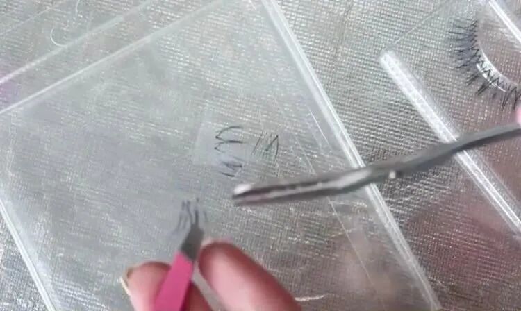 Step3 取出假睫毛,并将假睫毛剪开,分为4~5段。接着按照原来的长度,将剪好的睫毛排列整齐。