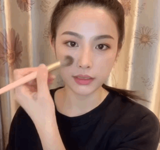 可以选择扇形刷子,因为它的形状非常贴合苹果肌。这里提醒大家:画重了不要用刷子来回扫,只会越扫越红。如果腮红涂坏了,不要用粉扑沾着粉饼在脸上来回蹭,卡皮就都白画啦!