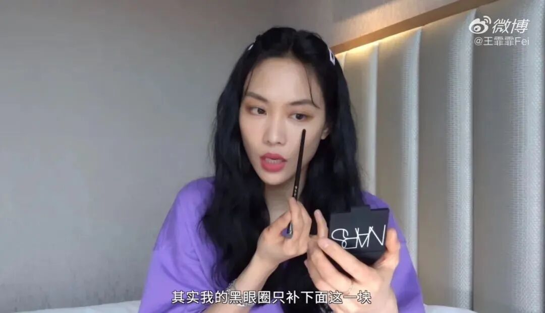 大地色百搭不出错,而且能让轮廓深邃,王霏霏用到比较多的是Nars的双色眼影Surabaya,两块颜色都是比较深邃的棕,自然实用不夸张,眼上眼下都可以用,能让眼睛变得很有神,在舞台上非常好看。