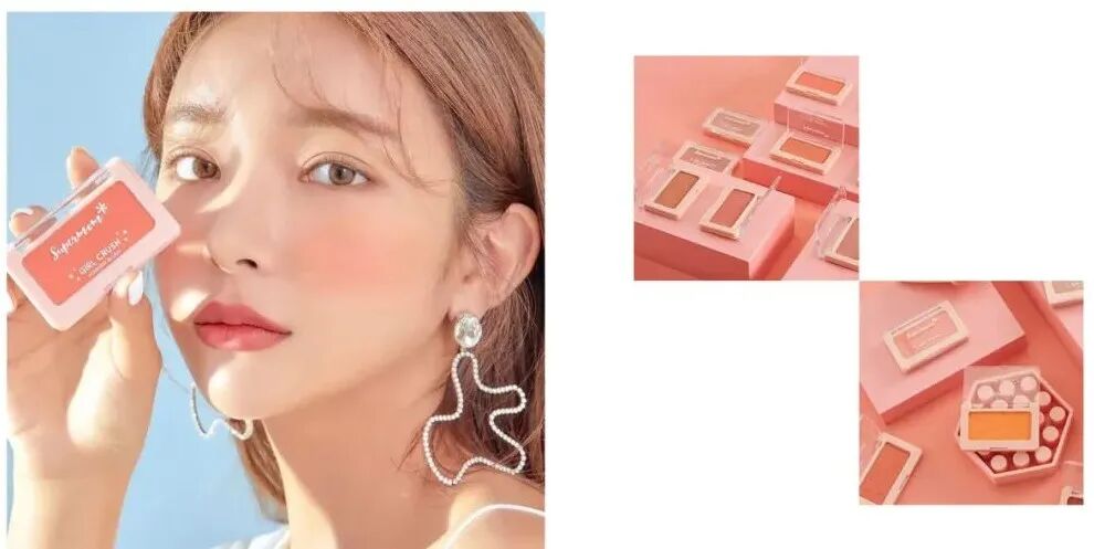 红爆外网的腮红也得来一块,有粉状和膏状可选,从活力橘粉色到温柔玫瑰色都备齐了,显色度超高,还能当眼影用。