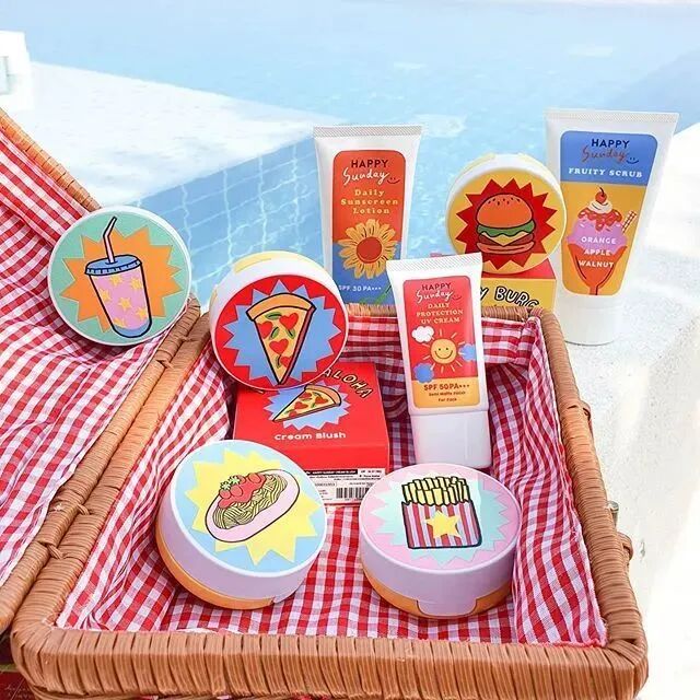 当然了,很泰国风的品牌也不是没有,HAPPY Sunday在保留了缤纷色彩的基础上又巧妙地增加了甜点、手绘等元素,让人看了好想去度假!