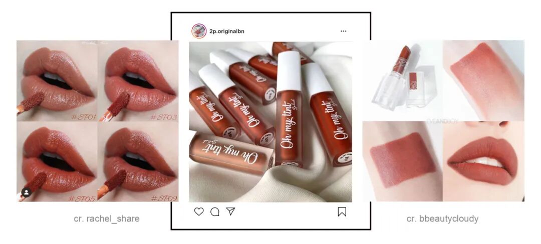 色号都是黄皮能驾驭的枫叶红、豆沙粉等,气质棕也包含在内,可以当修容用,是很高级的画法哟。