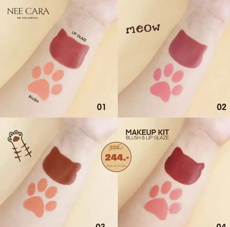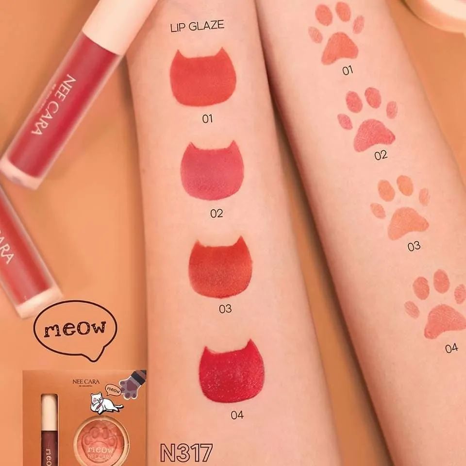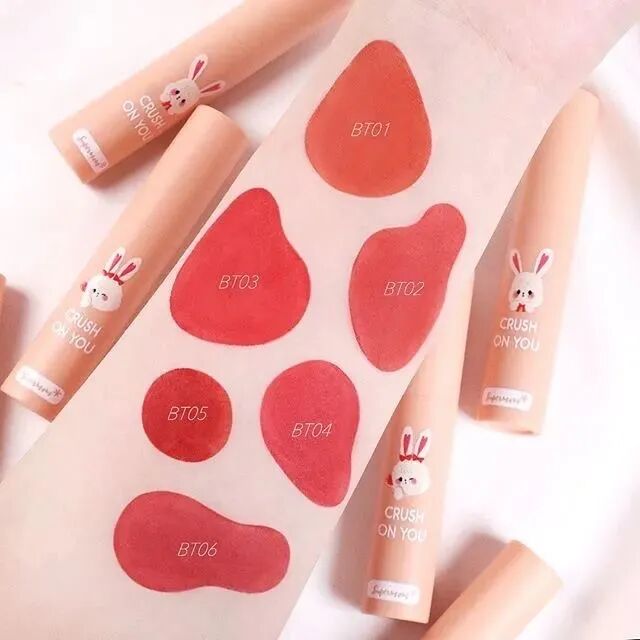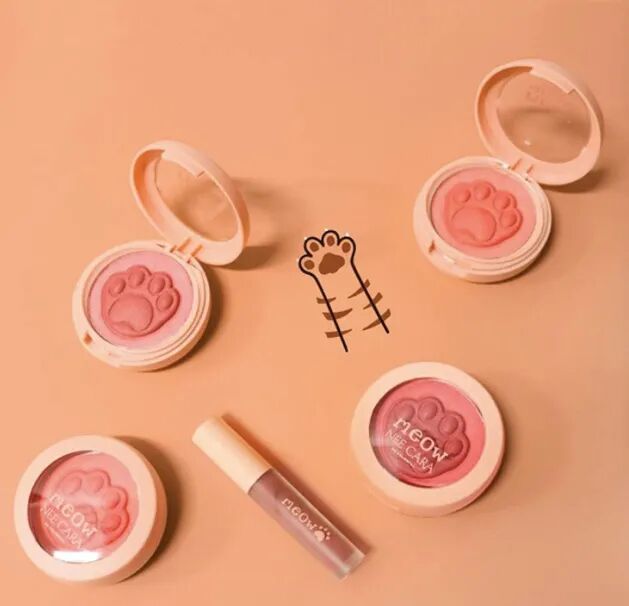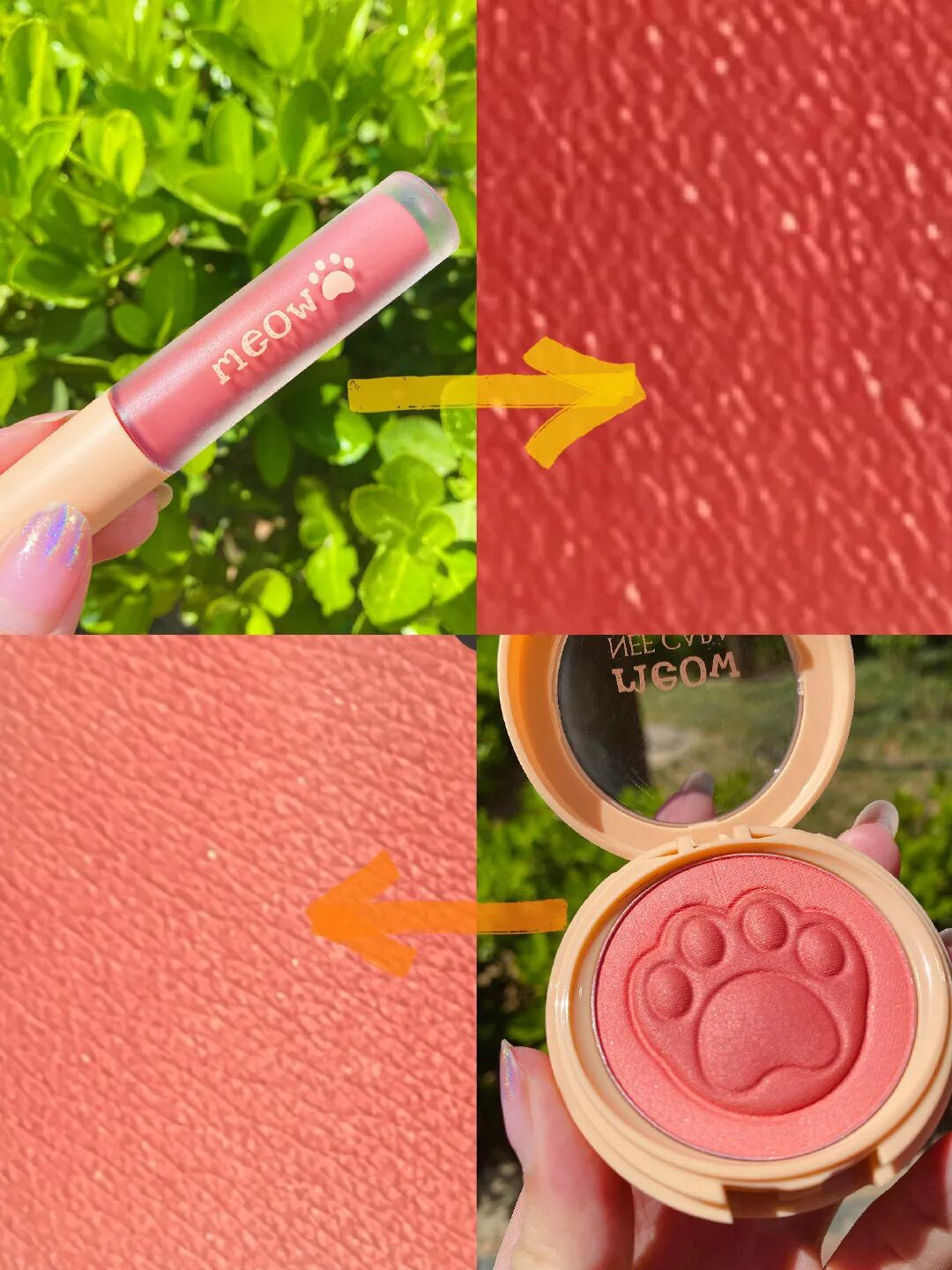 唇釉的外壳上也印着肉嘟嘟的小肉垫,每个色号都和配套腮红属于同一色系。