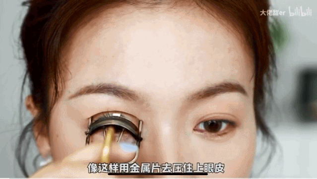 在夹睫毛的时候,把睫毛夹的角度微微向上倾斜,铁质部分压住眼皮能让睫毛“翻”出来,更容易夹到睫毛根部,卷翘效果会更好。