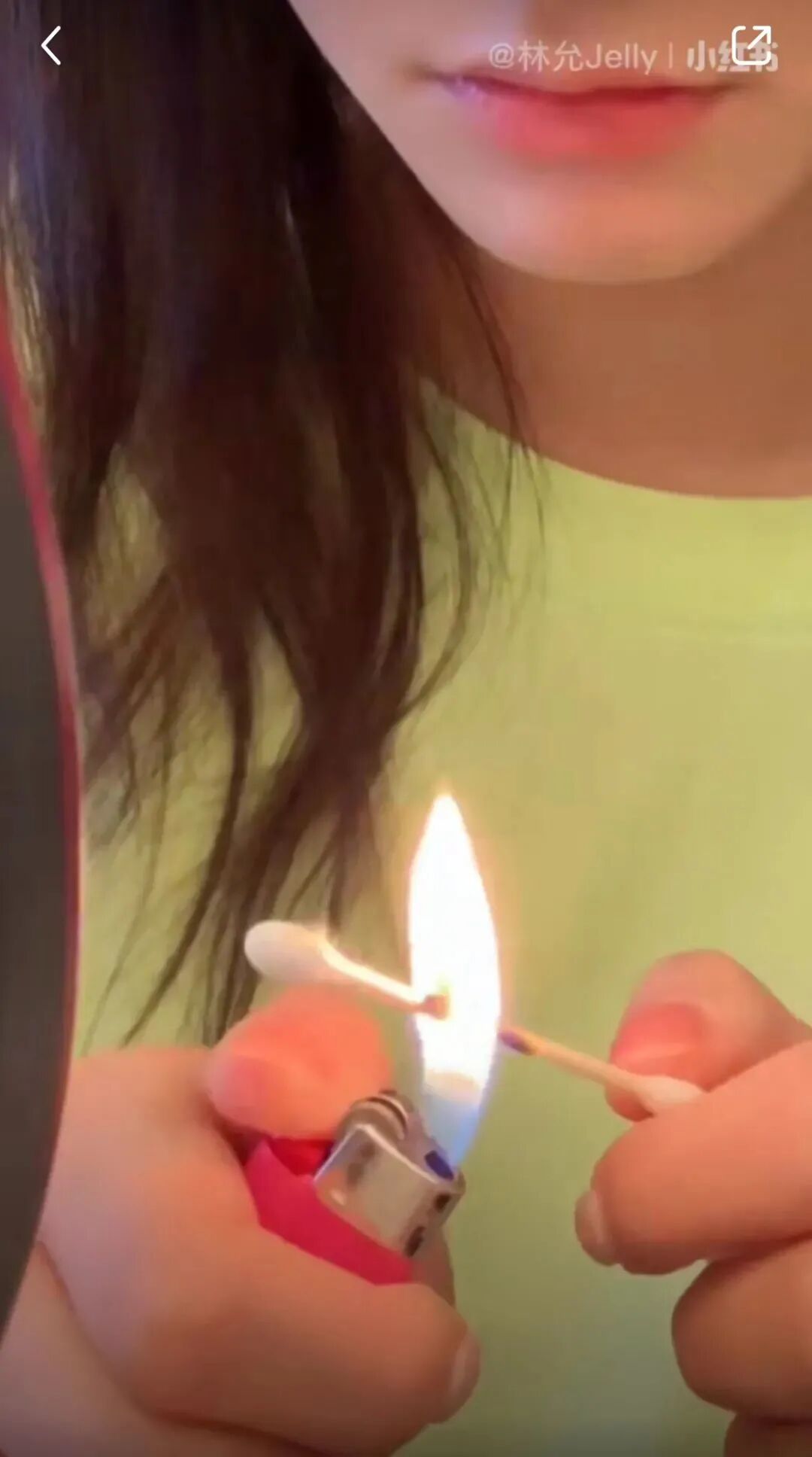 用打火机稍微烧一下棉签的木棒,烧到表面微微发黑就好,千万别烧着,然后凉一凉,等到用手摸起来感觉微微烫手的时候再从睫毛根部开始,一点一点地烫睫毛。