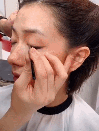 注意:这里不建议大家用液体眼线笔,液体眼线的妆效存在感太强稍不注意就会抢了“雀斑”的风头,而深色眼影则更为自然还能增加眼部的阴影感。