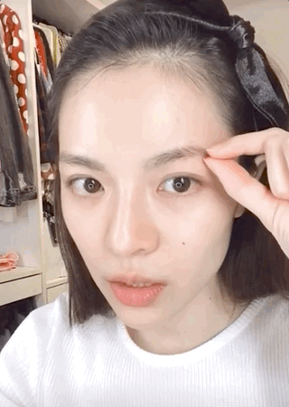 钟楚曦的修眉大法值得参考,在保持原有眉形的基础上,先将眼皮和眼尾下1厘米外多余的眉毛刮掉。