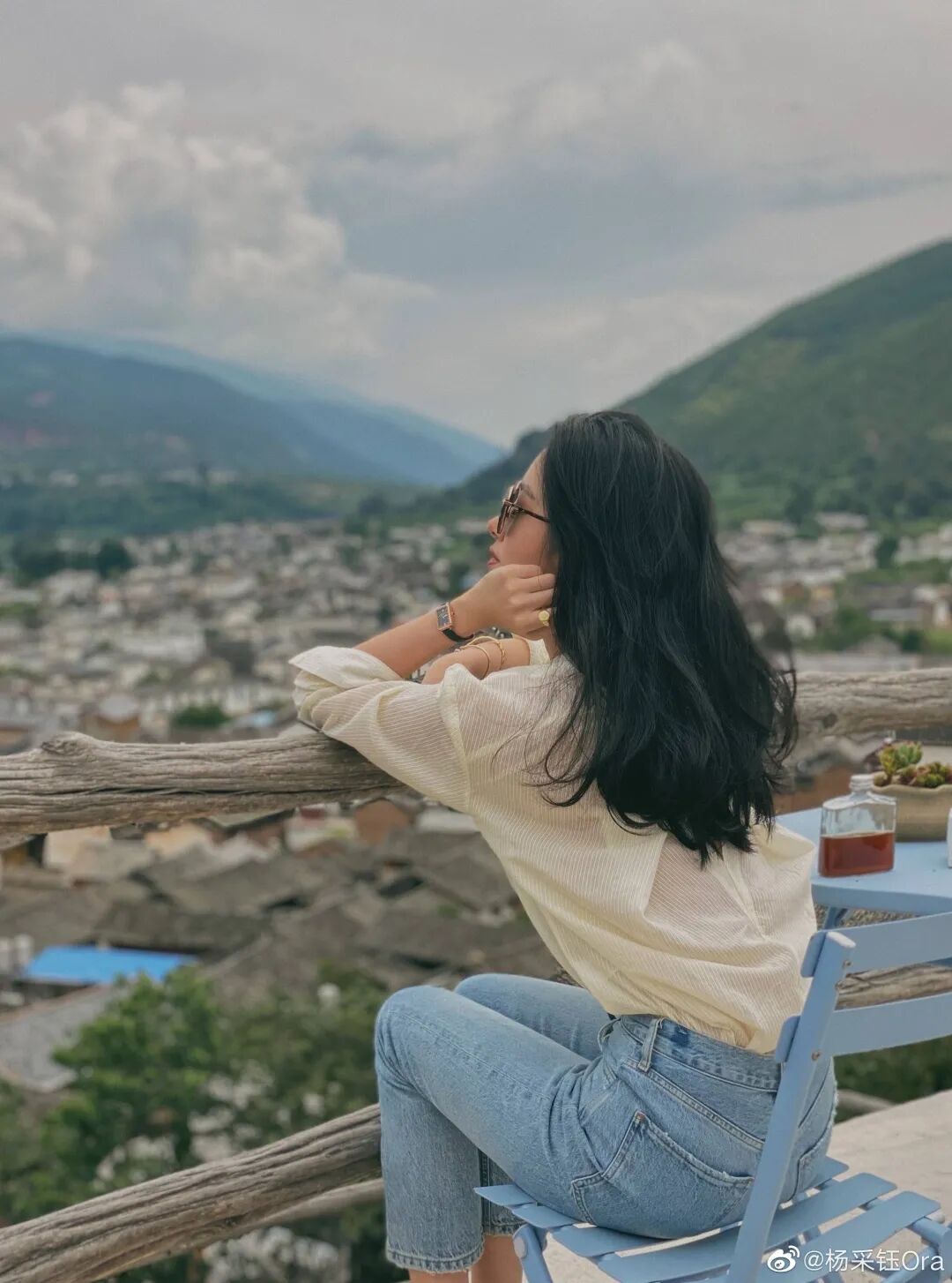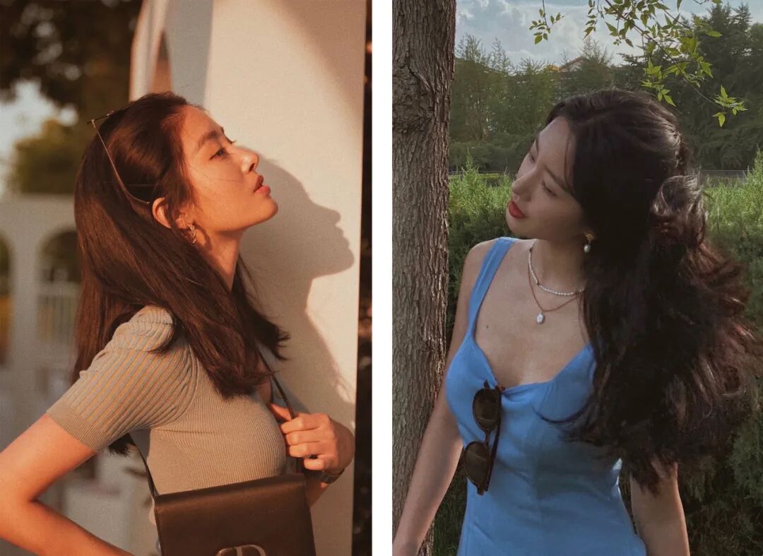 比起风景,更让人移不开眼睛的自然还是“画中人”,哪怕只是穿着简单的基础款,也挡不住从骨子里透出来的气质美。