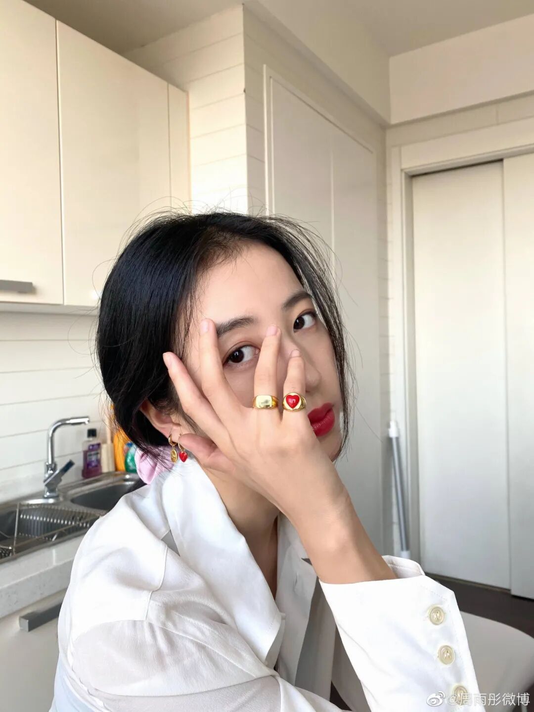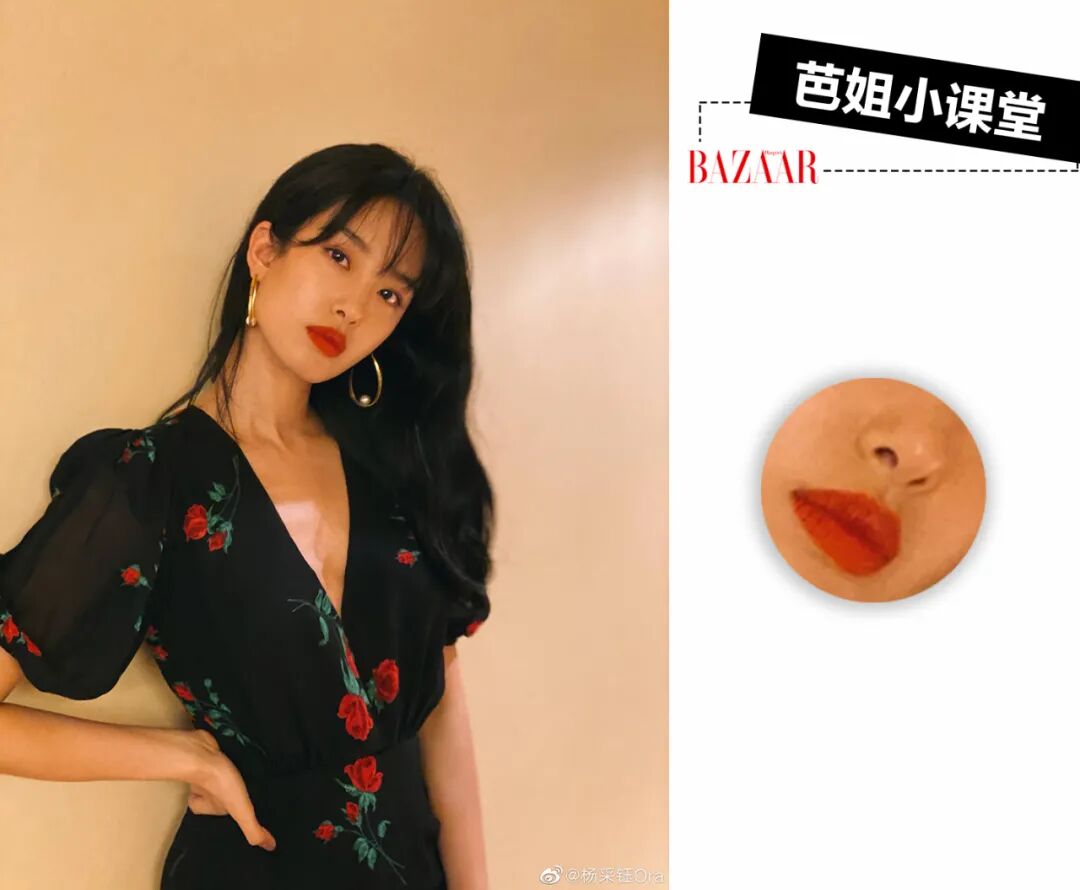 红唇还尤其配黑发,浓重高饱和的颜色产生强烈的反差效果,乌发红唇把气质衬得更加古典了~