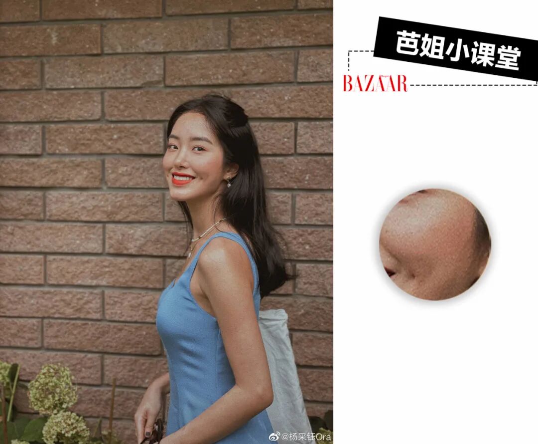 在开头我们已经说过了,脸上的颜色要少,所以你很少在杨采钰的脸上看到腮红的存在。