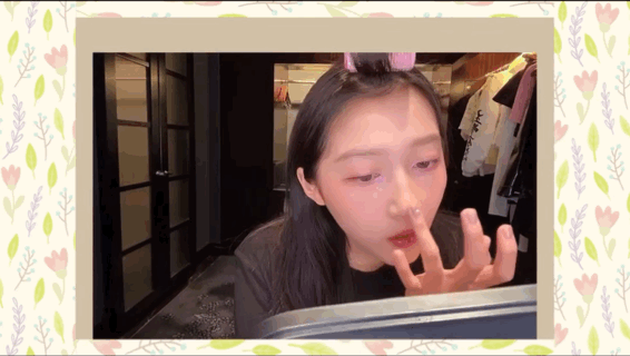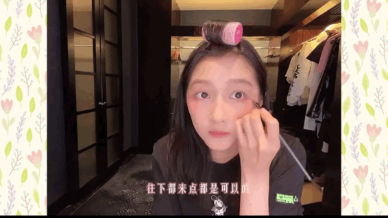 Step6:贴近眼下化腮红。腮红可谓是这个妆容的重点了,扛起了打造娇羞感的重任。化的时候贴紧眼下,以打圈的方式向苹果肌、太阳穴下侧延伸。