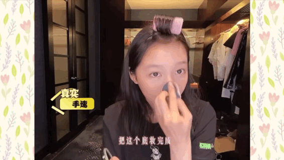 Step4:定妆。用美妆蛋将散粉按压到面部,美妆蛋能够更好地促进散粉和底妆融合,再配以按压的手法让其二者贴合牢固。