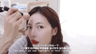 惠利的朋友Rimmu在影片里也提到自己在化妆时,会把腮红涂到超过颧骨的位置,让它达到修容的效果。
