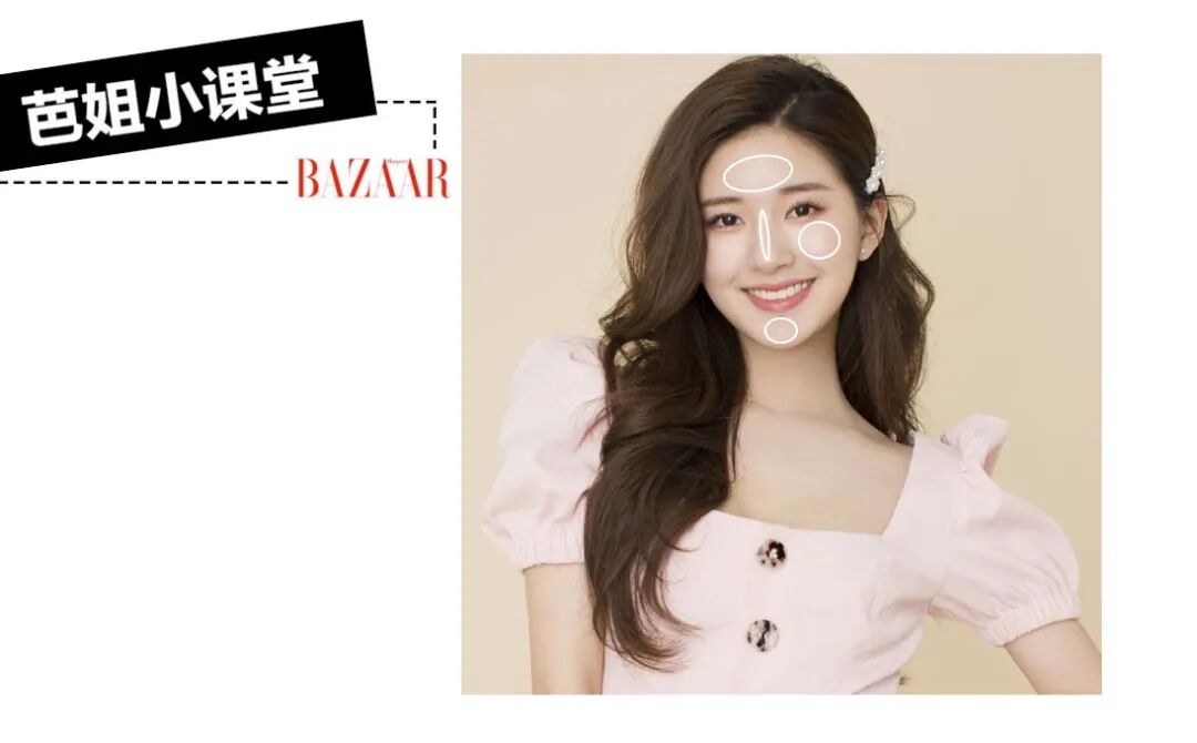 如果圆润脸形又是肉肉脸,还可以将脸颊的高光着重放在苹果肌的部位,强调脸部的饱满感。