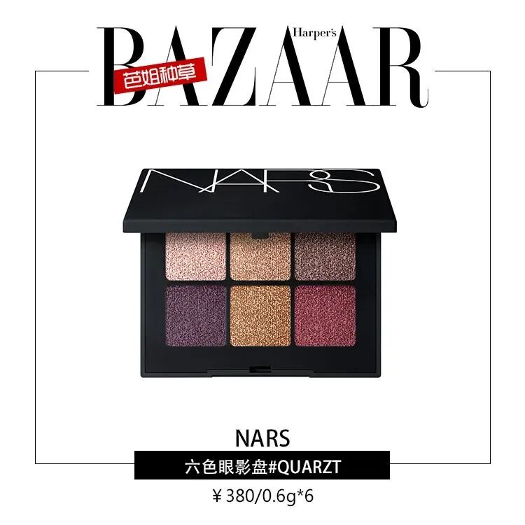NARS这款全珠光小眼影盘很适合化眼影下至妆,可选色多,适合各种妆容。芭姐比较推荐的颜色就是紫色、深棕色、红色。粉质很细且好推开,大家在化之前一定要抖去多余的粉哦。