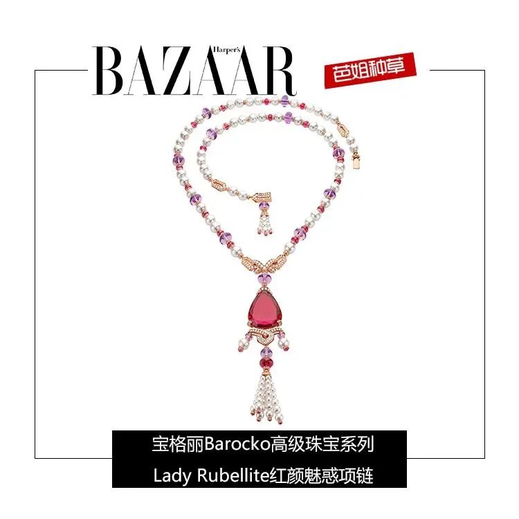 活力四射又不失华美的造型,是这一季高珠的主题。宝格丽选用红紫二色的彩色宝石雕刻成剔透珠形,与浑圆的珍珠结合,塑造造型多样的珠串项链。精心搭配的珍珠流苏形状均匀,使得项链的造型更具动感,中心衬托硕大的水滴形主石,晶莹剔透且颜色浓郁。这份材质的混搭美,你Get了吗?