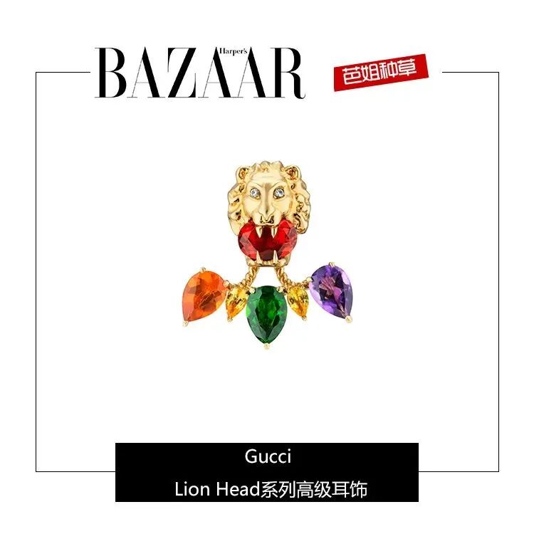 作为品牌故事中不可或缺的一部分,Gucci的雄狮是其多元设计中十分重要的元素之一。这一次品牌大胆地推陈出新,以雄伟的狮头元素为核心,由18K黄金精心打造兽首形态,并用钻石镶嵌狮眼,以彩色宝石点缀狮牙,在经典的题材上玩出新的花样。