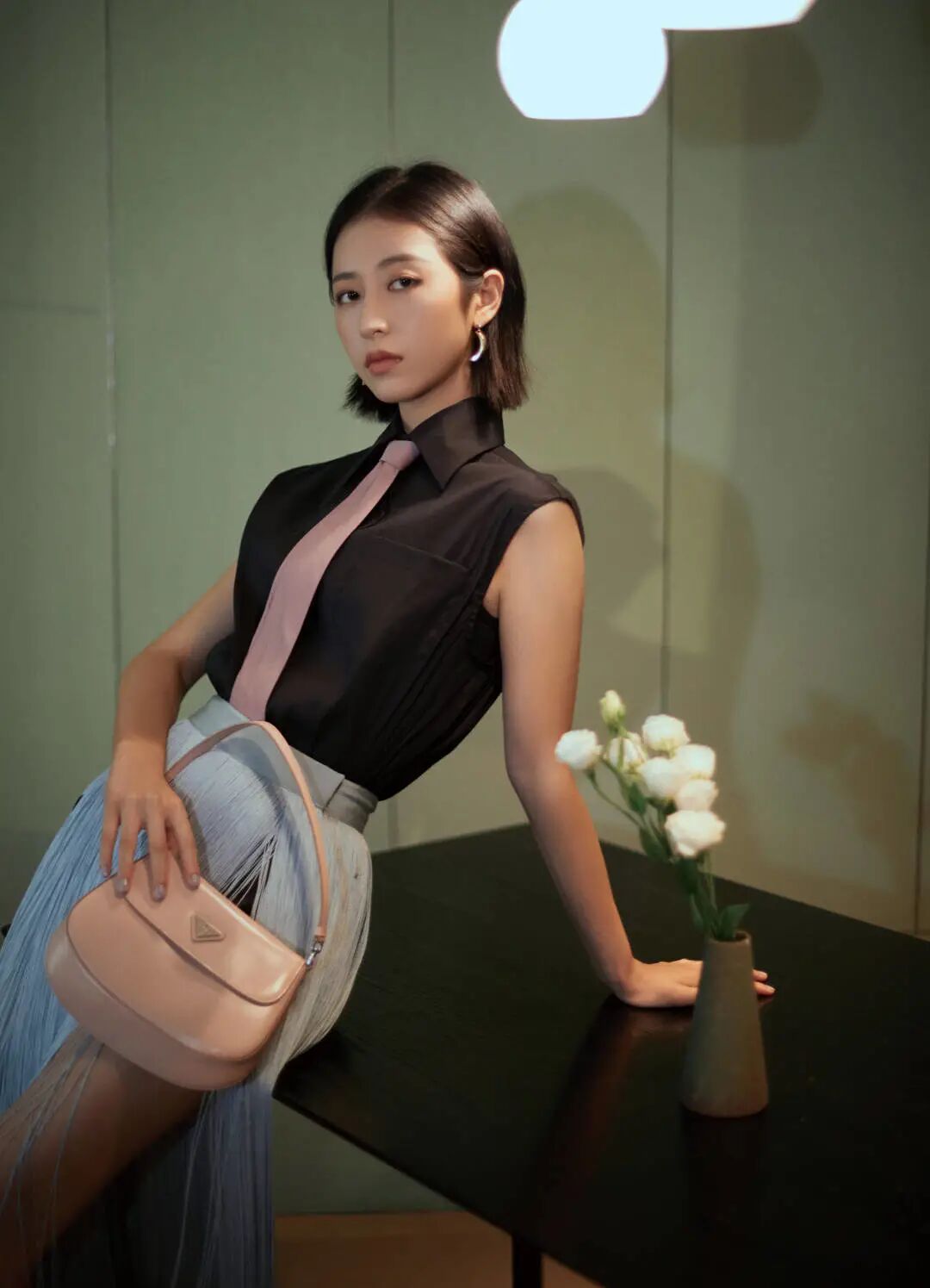 妆容上保留了少女感的淡妆,利用微微卷的中长发增添柔美氛围,整体看起来就是既温柔又有灵气~