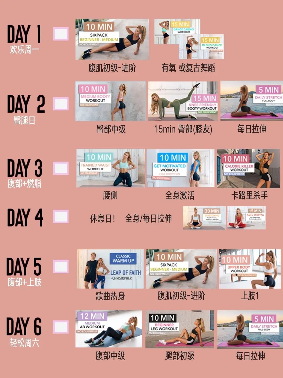 一个人锻炼难免会感觉枯燥,找闺密or男朋友一起,或者加入一个打卡群都会好很多~