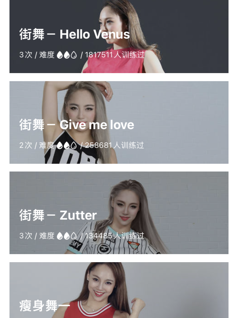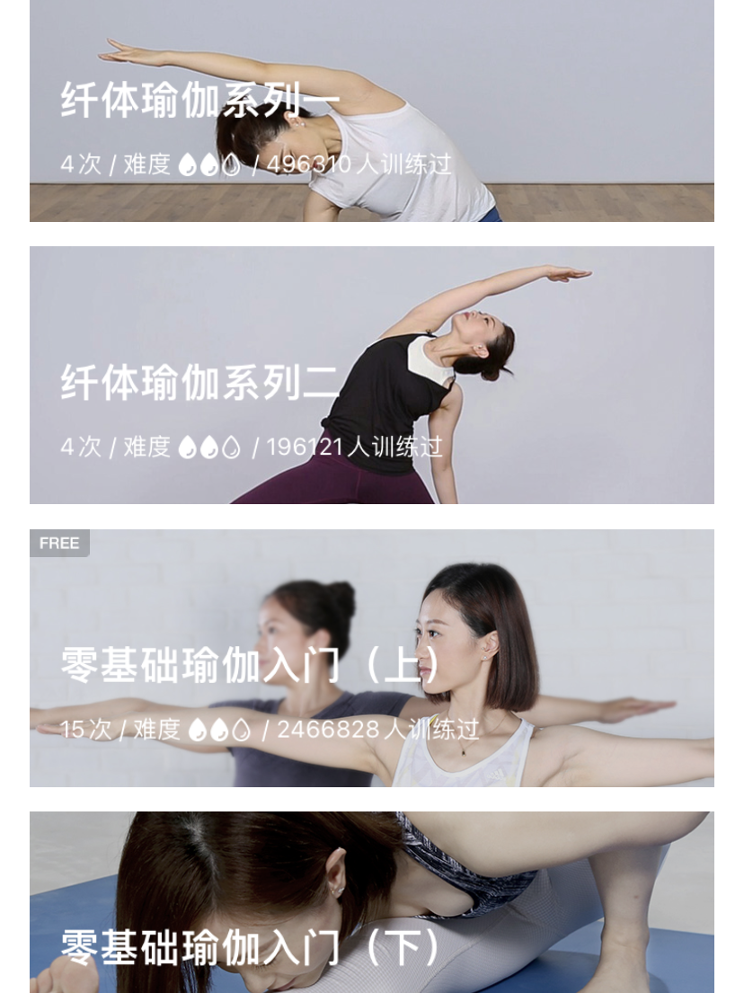多样选择课程,难度等级明确,可以说是设计得很人性化了,特别适合自我督促锻炼。