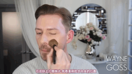 圆头刷应该在皮肤上用打圈的方式上妆,由面中逐步过渡到侧面,刷头面积大,刷毛密度高,上妆速度快。扎实的刷毛能够让底妆轻薄、均匀。对于鼻翼、嘴角等细节部位要有耐心。
