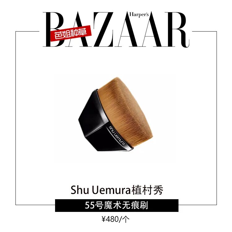 植村秀55号无痕粉底刷,55mm直径大面积上妆快速、方便,约198000根密实刷毛,上妆不留痕、不吃粉,棱角状能够照顾到眼周、鼻翼等细节部位。