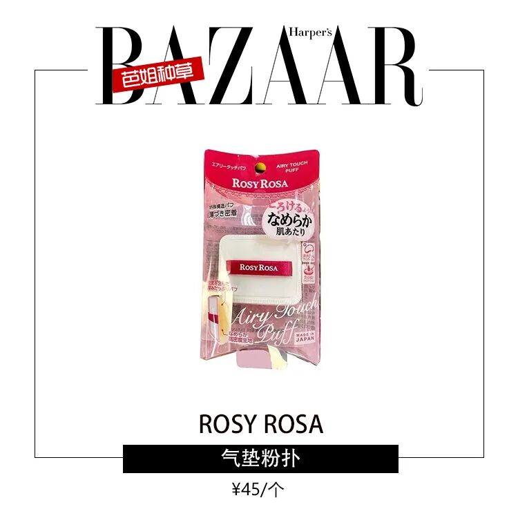 Rosy Rosa粉扑是具有一定厚度的,它表面非常柔软,回弹力度也很不错,膨膨的质感像棉花糖一般,上妆细腻服帖。
