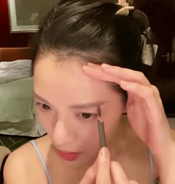 略带弧度的眉毛在头和尾都延伸一些,做好晕染,手动拉长但得看着自然~