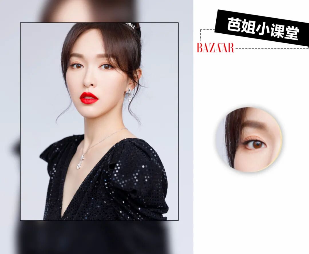 强调外眼角的存在感,注重眼尾的晕染并在下眼睑后半段画上一笔深眼影。