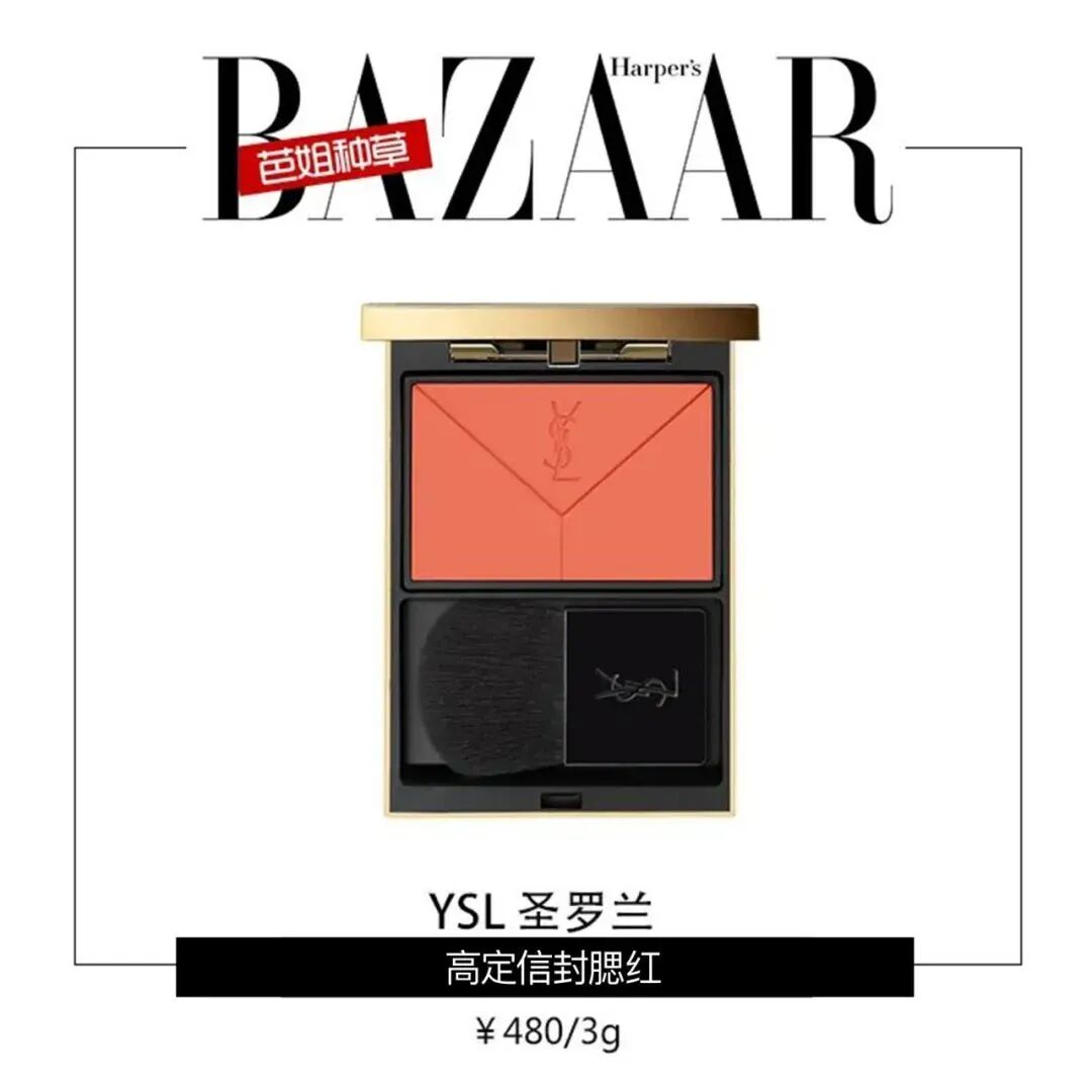 光看图片是深橘色,轻轻化到脸上就是带一点橘色调的干玫瑰色,简单横扫在苹果肌位置即可,面积虽小,但女霸总的气质有了!