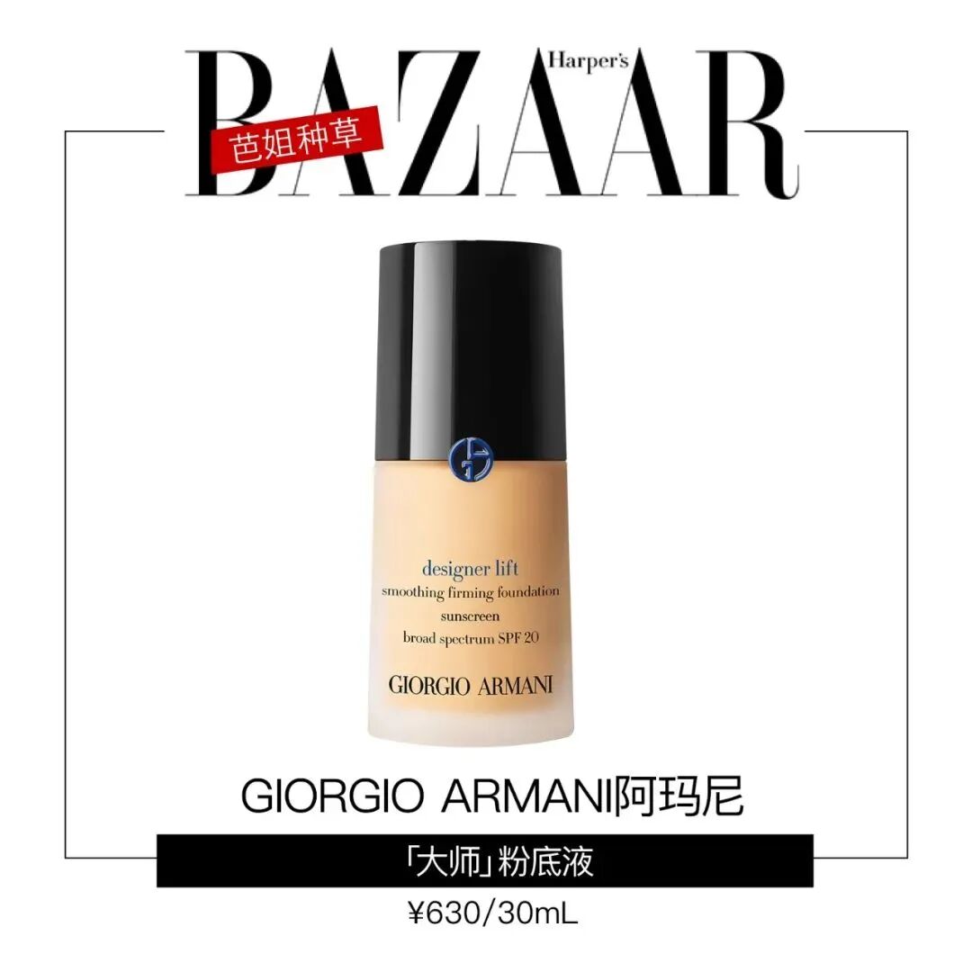女霸总偏爱的奶油肌妆效好伙伴:阿玛尼粉底乳。质地轻盈但很滋润,不管用手还是用美妆蛋,都能收获毛孔消失不见的哑光丝绒妆感。