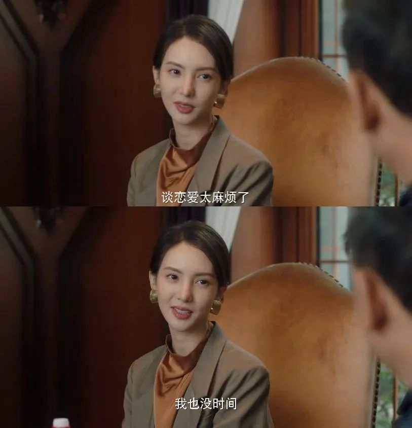 剧中的她偏爱设计简约、大气的衣着,搭配的发型也十分简单,在极简风中透露着气场。