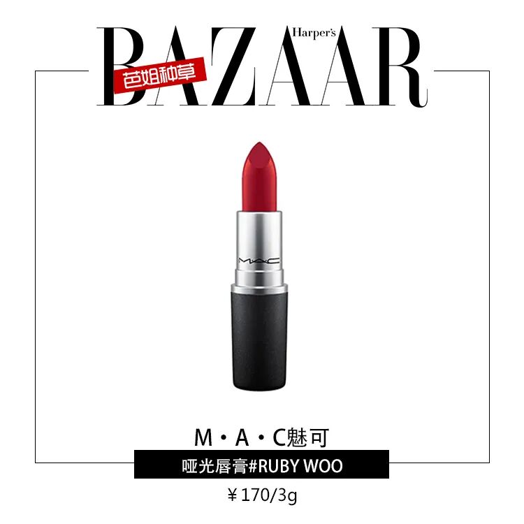 一款薄涂青春厚涂优雅的正红色,哑光妆效丝滑质地,一抹上嘴就显得高级,很适合搭配深色系的衣着哦!