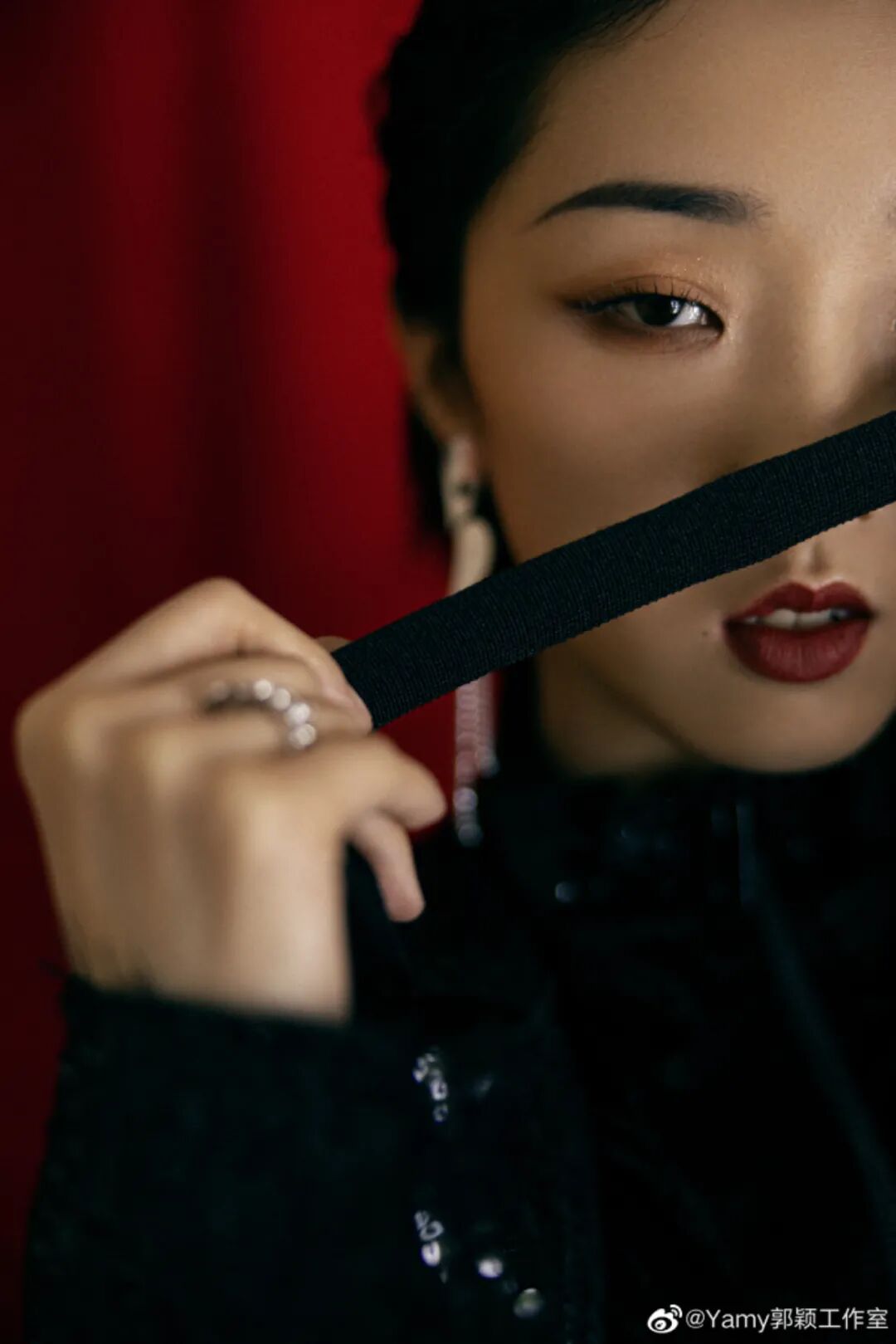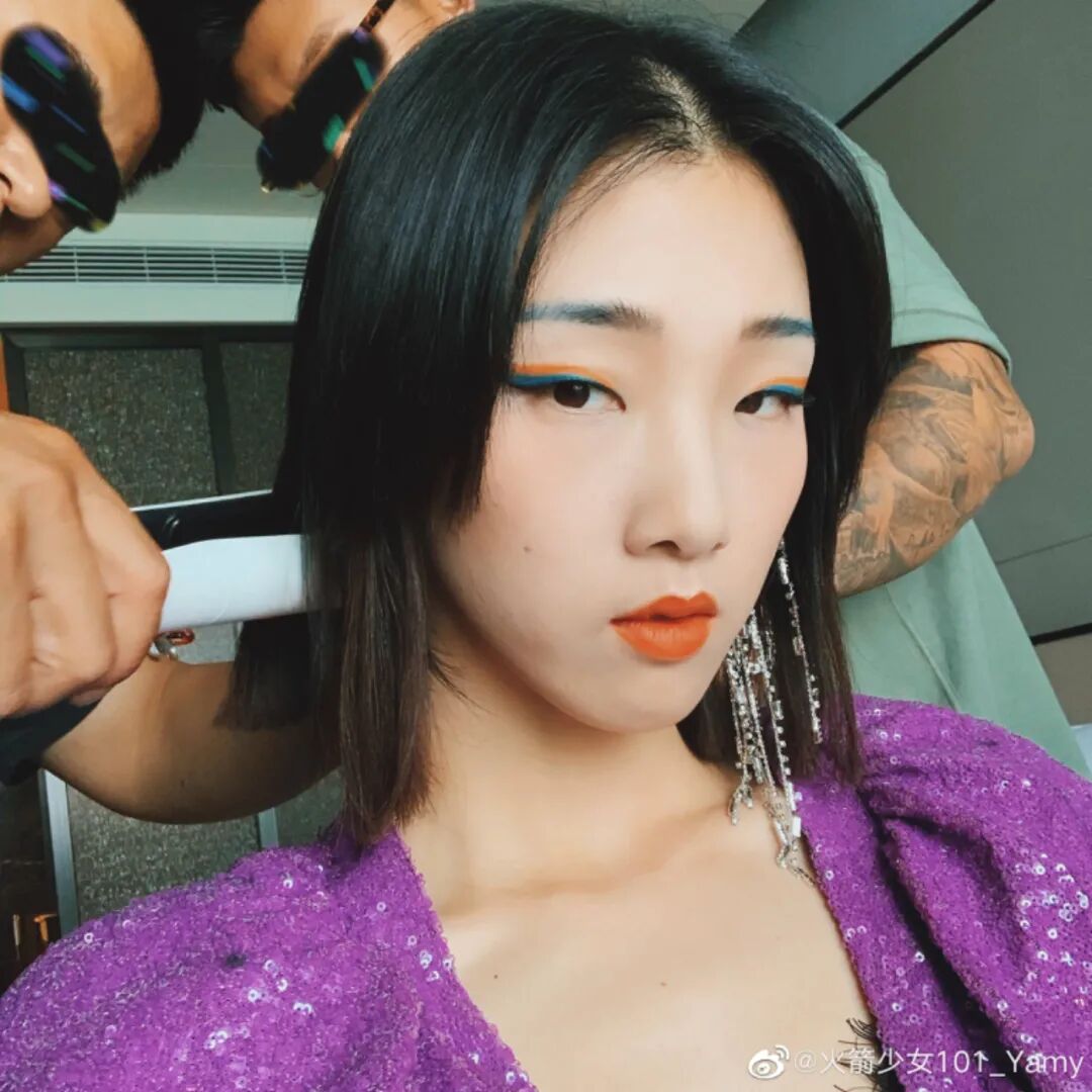 Yamy的脸型是很有特色的东方脸,辨识度极高,她对自己脸型也很欣赏,在妆容上除了自信,还很注重个性的表达,妆容也表现着一个唱作人的独立态度。