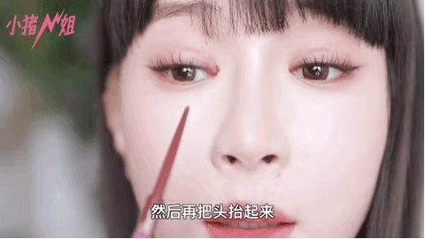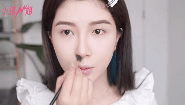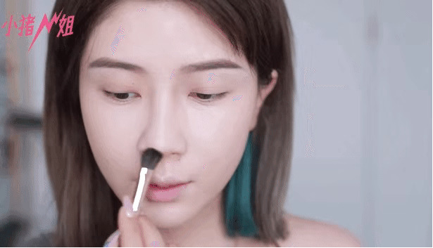 另外,如果你希望鼻头再翘一点,还可以在鼻头上一点的位置扫上一点,立体感就更强啦!而且也会让中庭有进一步缩短的效果。