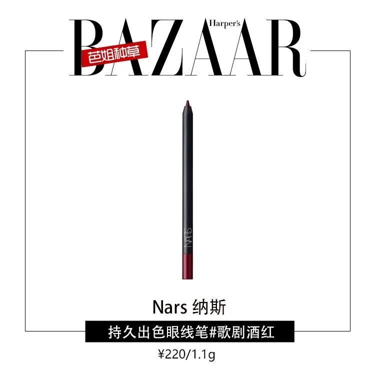 Nars眼线胶笔,酒红色这支很适合来打造内眼角,它笔触柔软不用担心弄疼眼睛,顺滑好上手,持久力也不错,上眼不会有结块、晕染的风险。