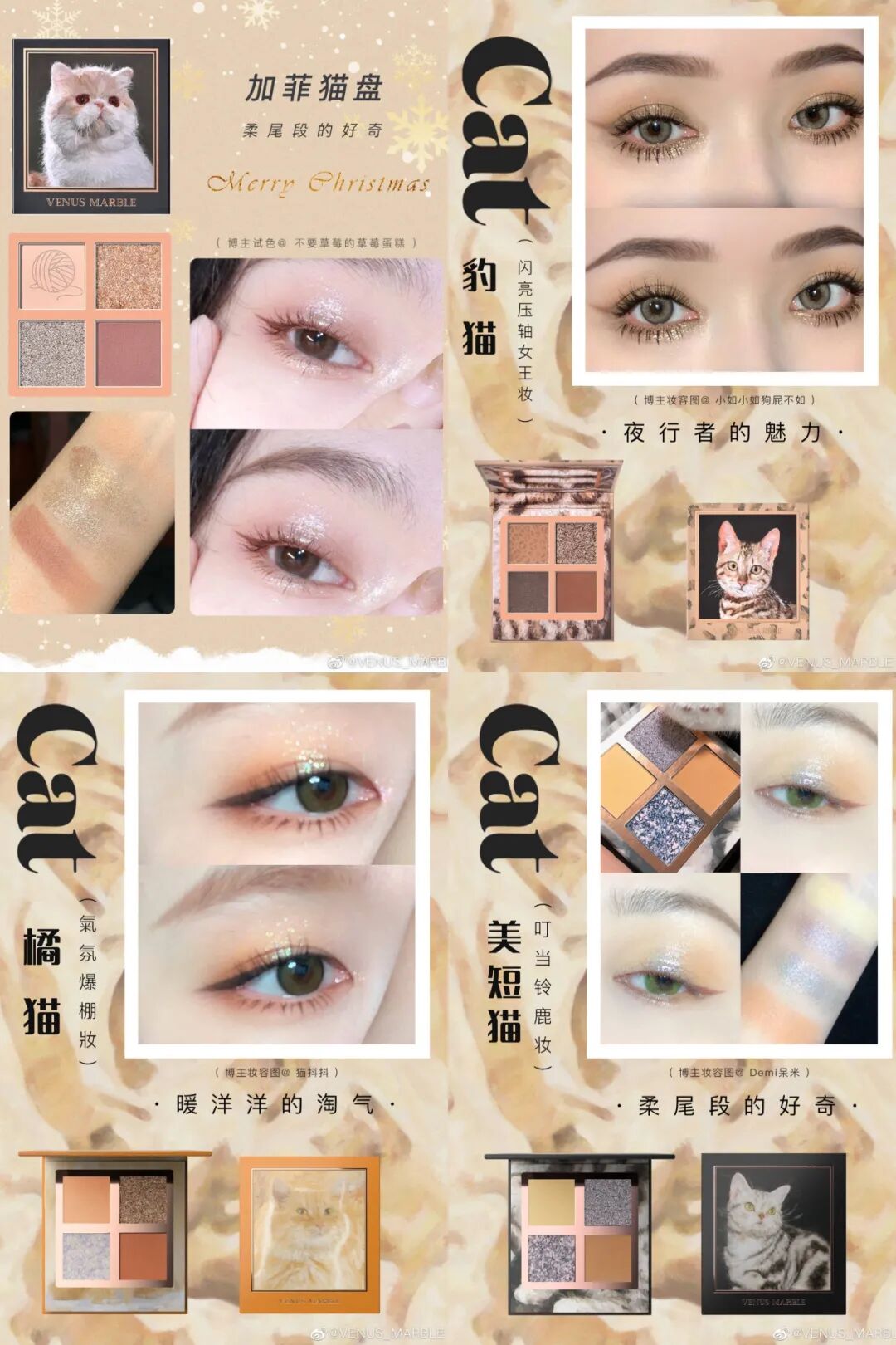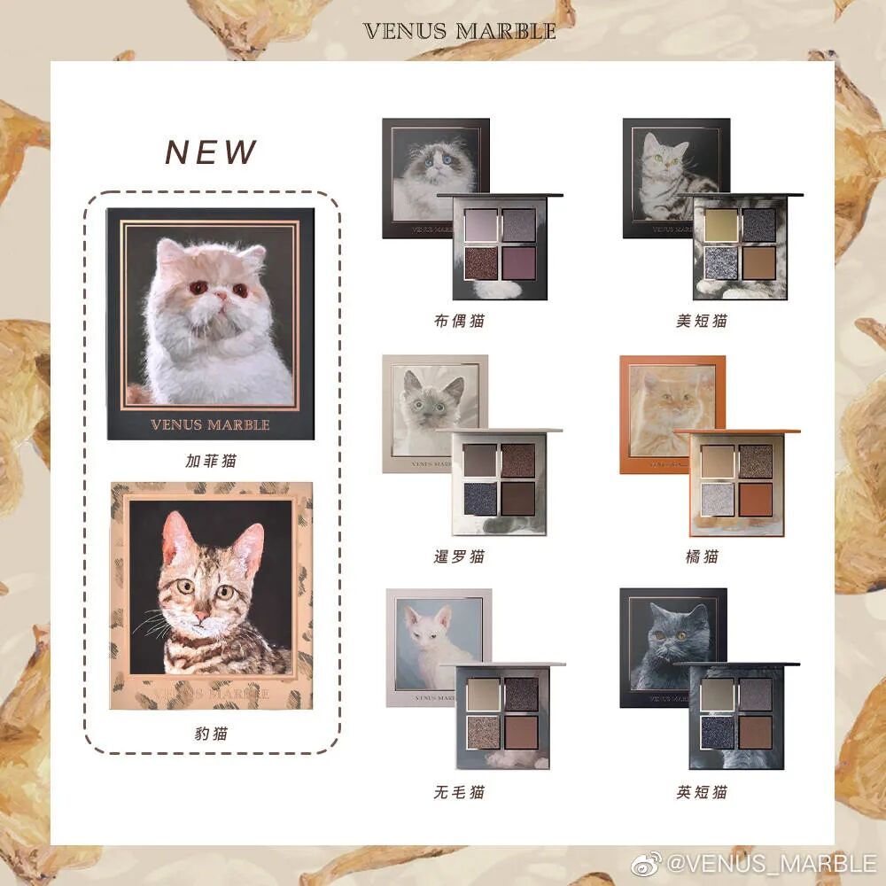 Venus Marble狠就狠在它把所有的猫种类都出成了四色眼影盘,不管你是哪种猫奴,都能找到自己的梦中情猫。而且这一系列还在不断出新猫,爱猫就要all in!