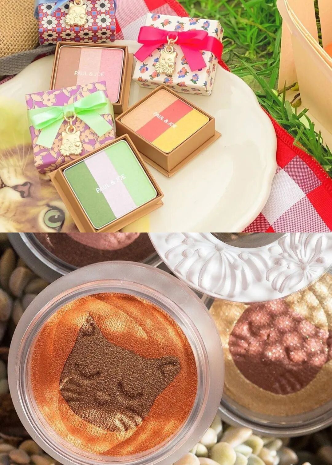 Paul & Joe是老养猫大户了,爱猫人士应该都很熟悉它,它家的产品上随处可见猫咪元素。腮红盒上有猫咪挂坠,眼影上也要印上猫咪脸。