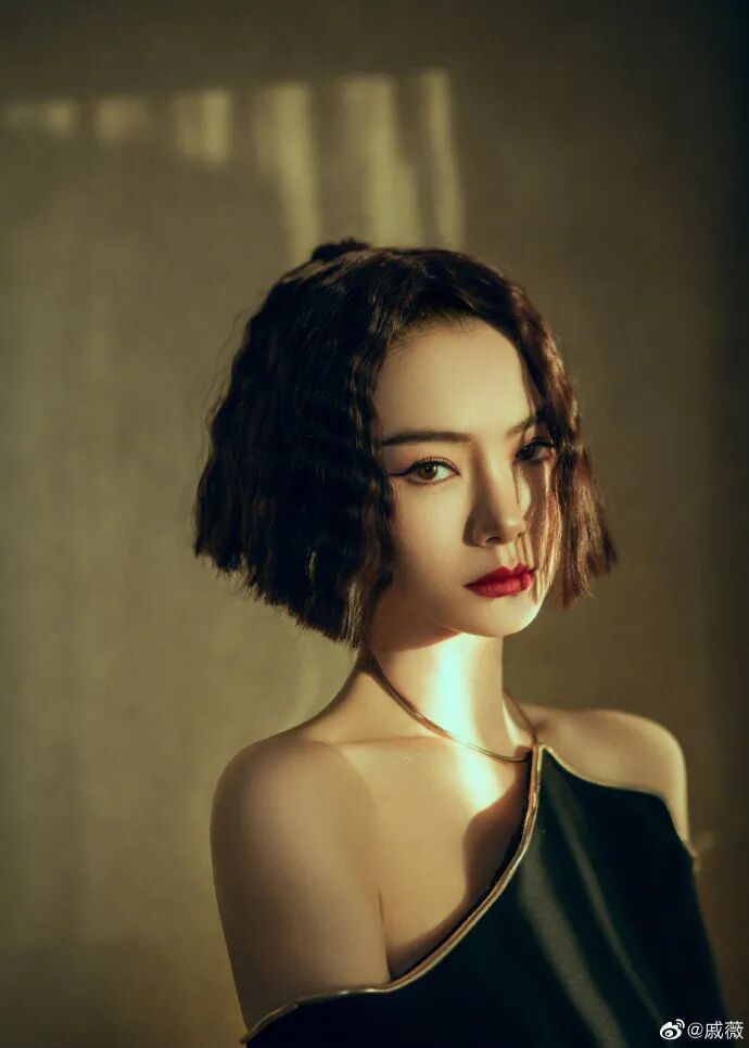 不管是从正面还是侧面,简直三百六十度无死角。全新的短发造型让她看起来更多了些神秘和灵动。