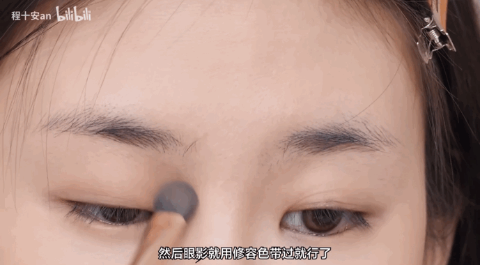 眼影用修容色带过即可,需要注意的是下眼睑也要带到哦~
