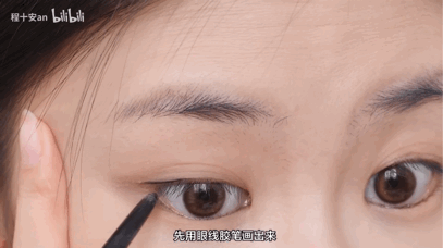 眼线可以先用眼线胶笔画出形状,再用眼线刷拖出来,这样比较好操作不容易手残失误。