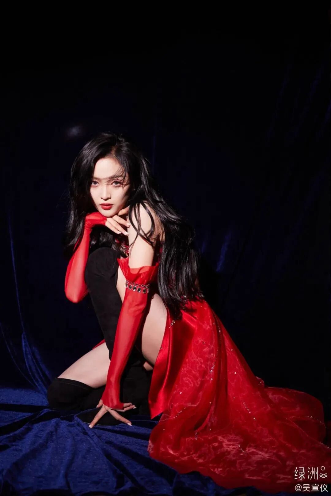 吴宣仪的红色纱裙就是午夜的摩登女郎,看一眼就被她的性感勾了魂。