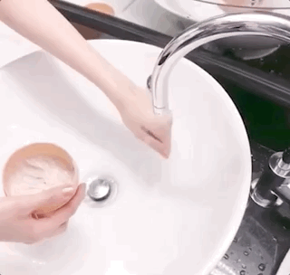 首先,洗手的时候我们可以用温度在40℃左右的热水泡一泡手,软化手部的老废角质。