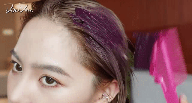 当我们的头发漂过后,会变成黄色,利用紫色的色母可以盖住头发上的黄,让头发呈现出新发色。