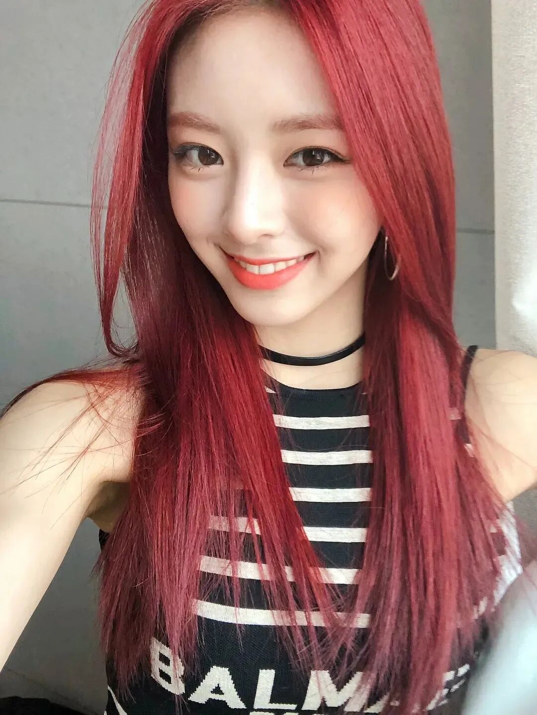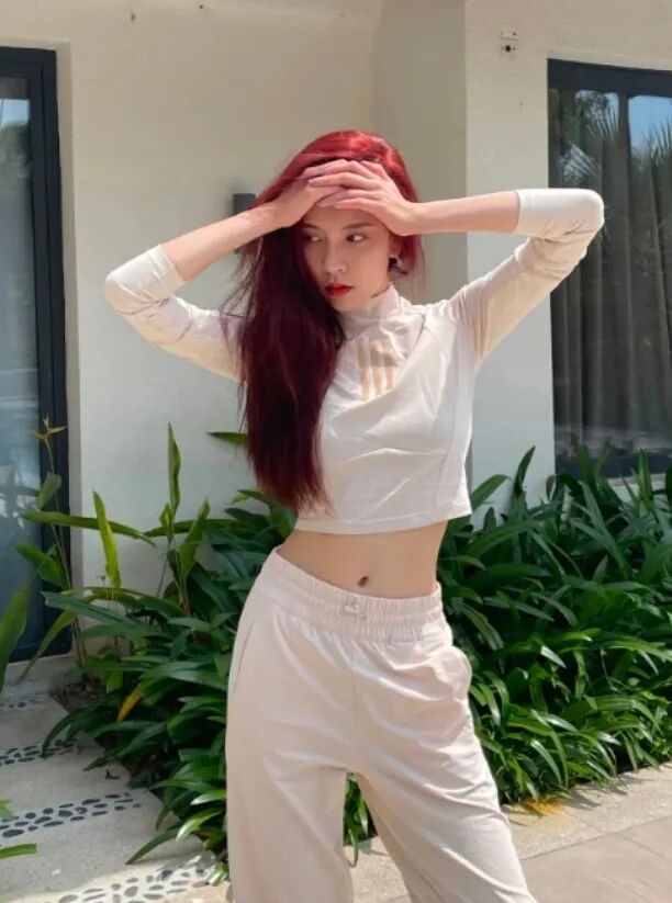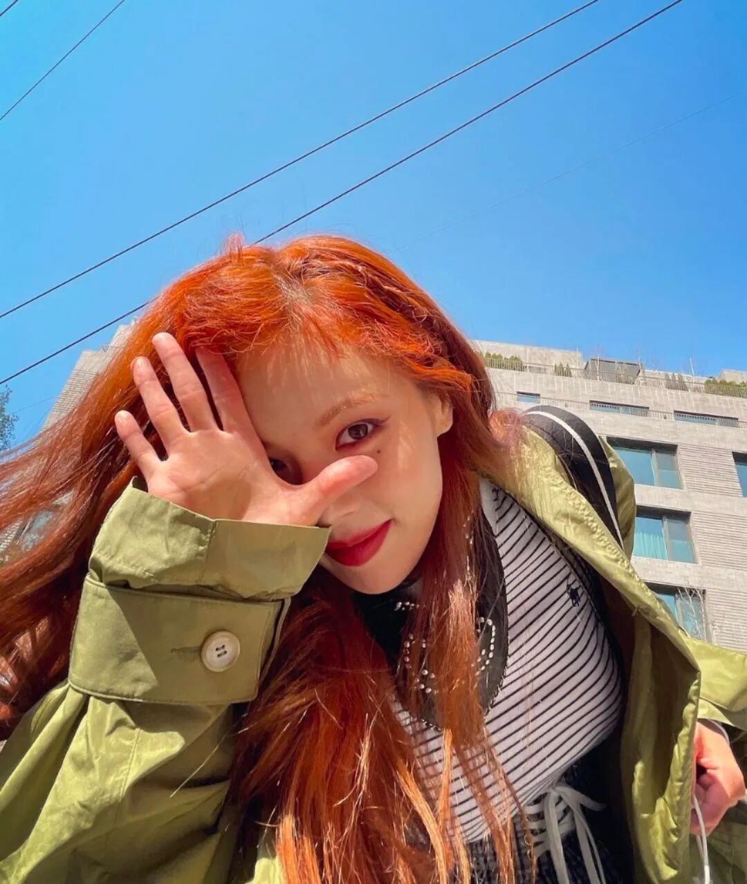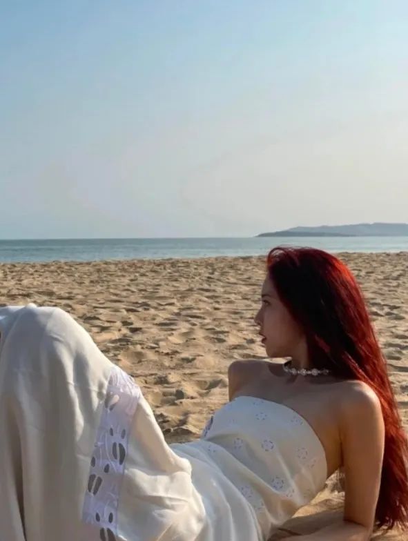 一头惹眼的红发成为最大亮点,随风撩动就很有气场,也很显白抬肤色。