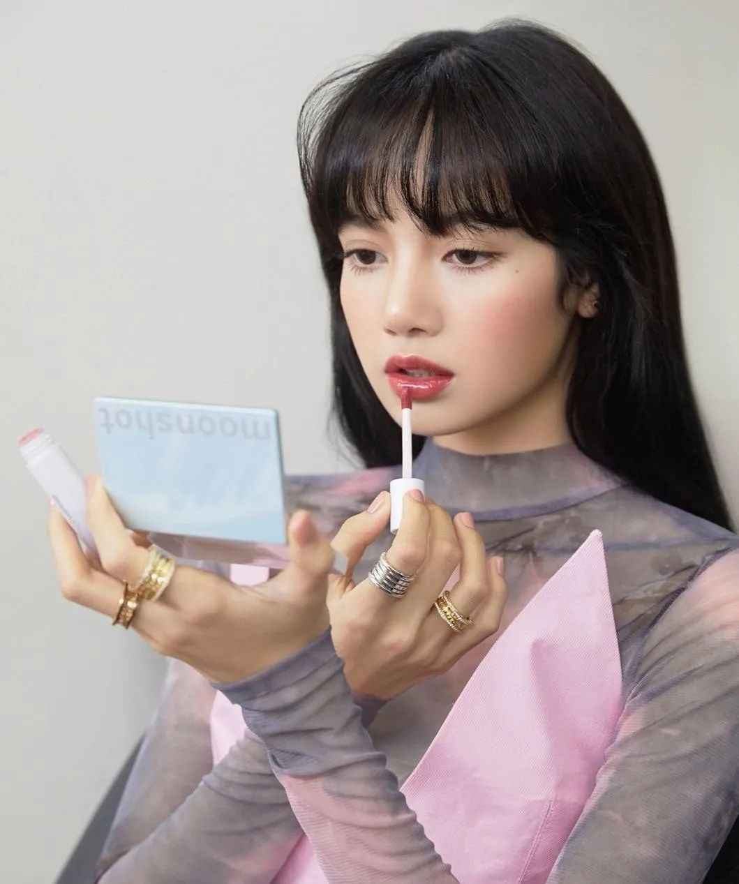 不过这种用到纸巾or散粉的方法只适用于哑光雾面唇膏,想要果冻唇/玻璃唇的妆效,得换口红雨衣上阵!